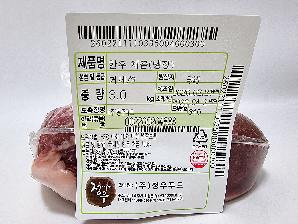 같은 이력번호를 가진 소의 다른부위 상품입니다.