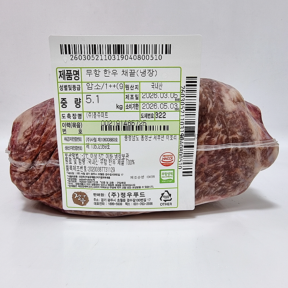 한우채끝(냉장):암소1++(9)등급 > 채끝