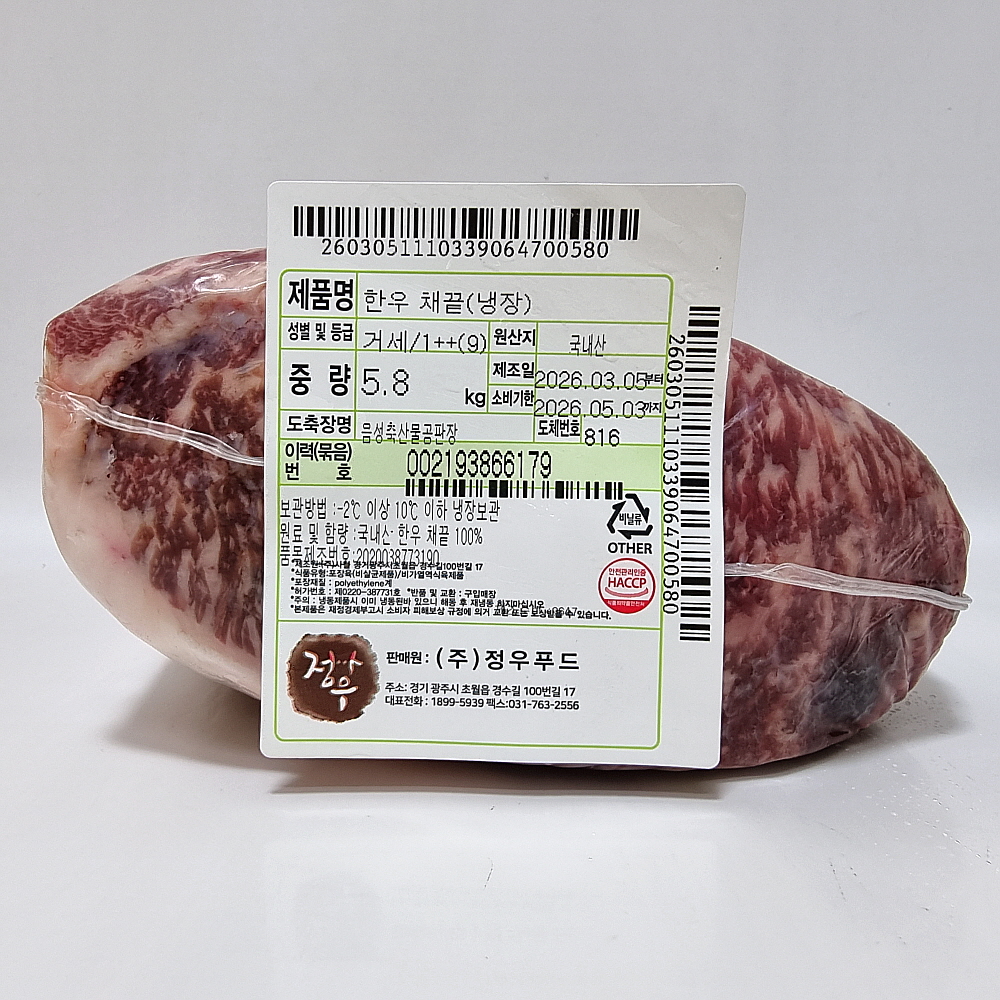 [1++9등급]한우채끝(냉장):거 단가 : 113,900