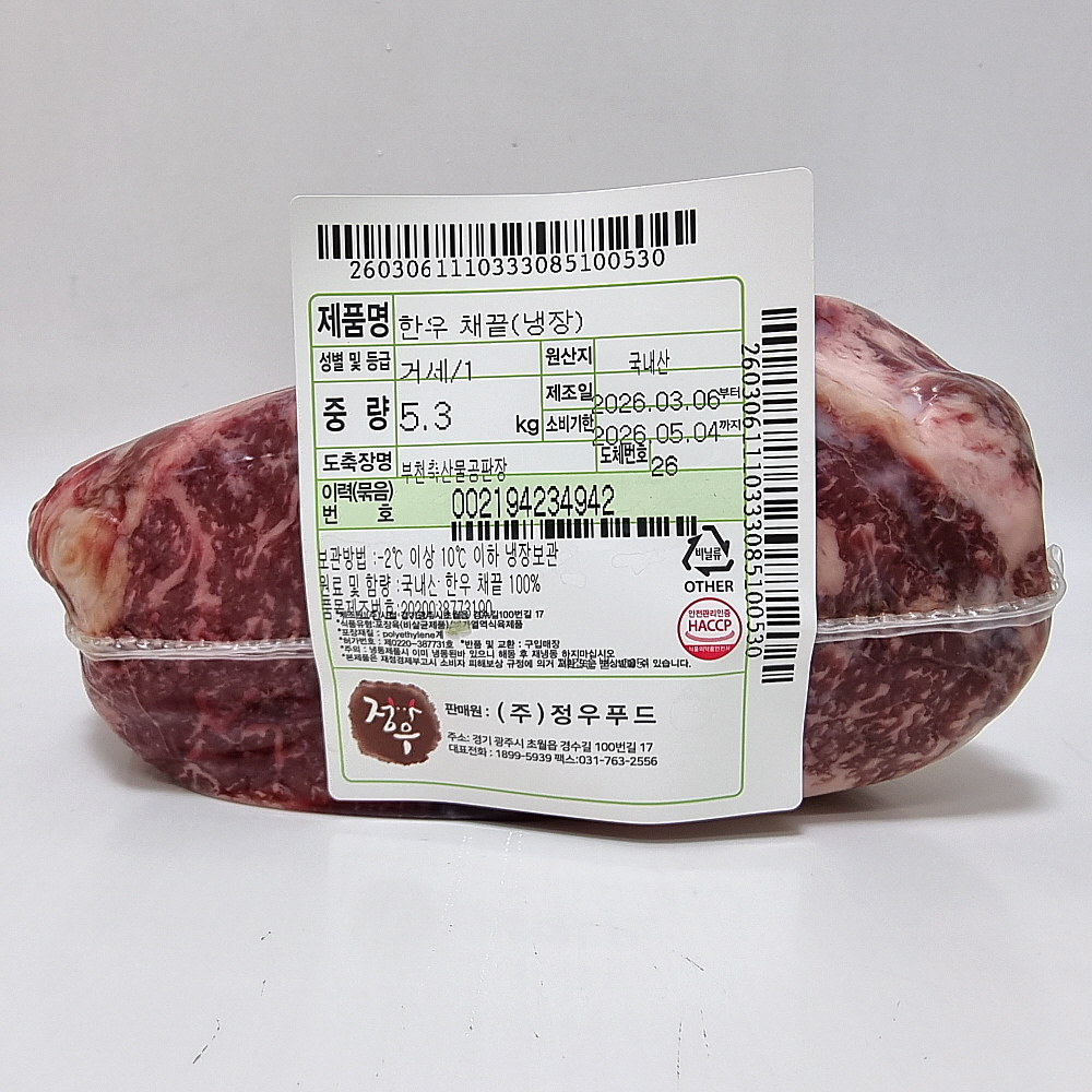 한우채끝(냉장):거세1등급 > 채끝