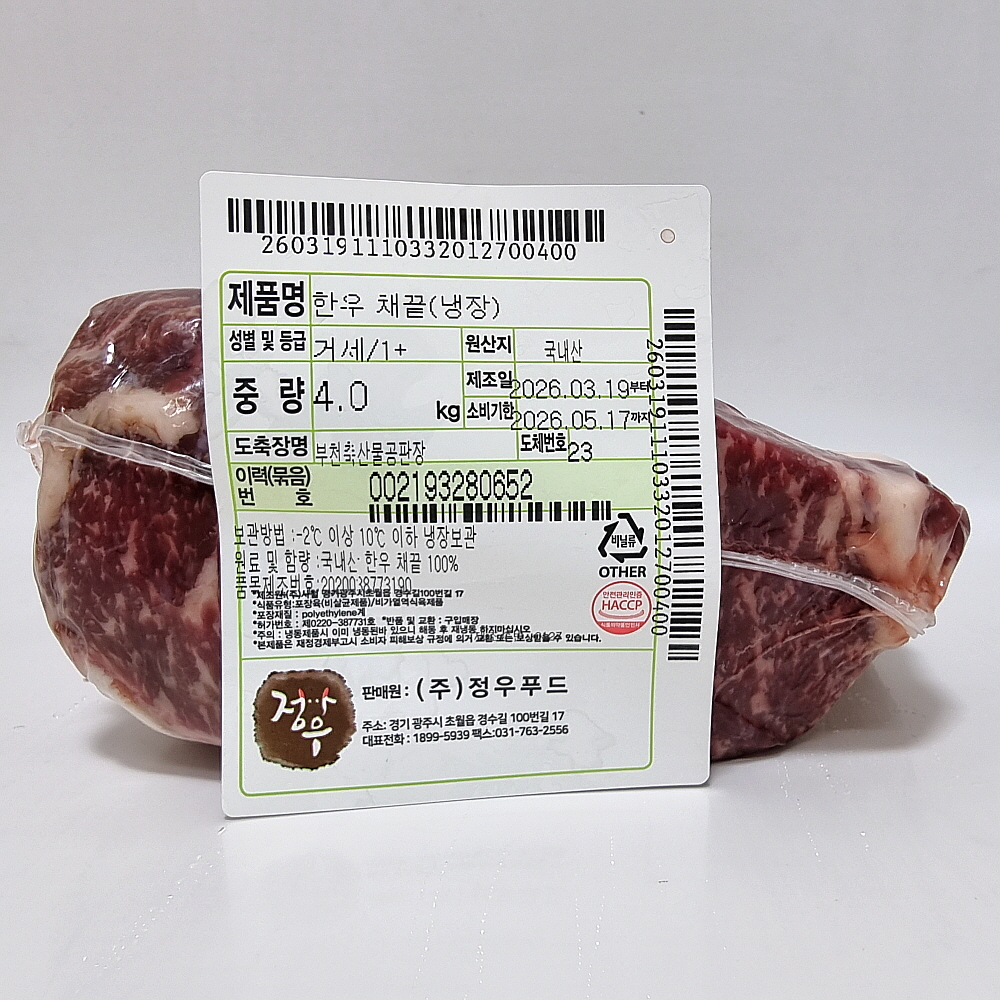 한우채끝(냉장):거세1+등급 > 채끝