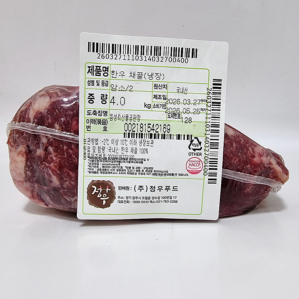 한우채끝(냉장):암소2등급 > 채끝