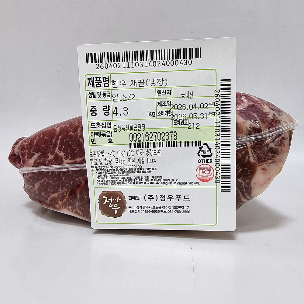 • 한우채끝(냉장):암소2등급