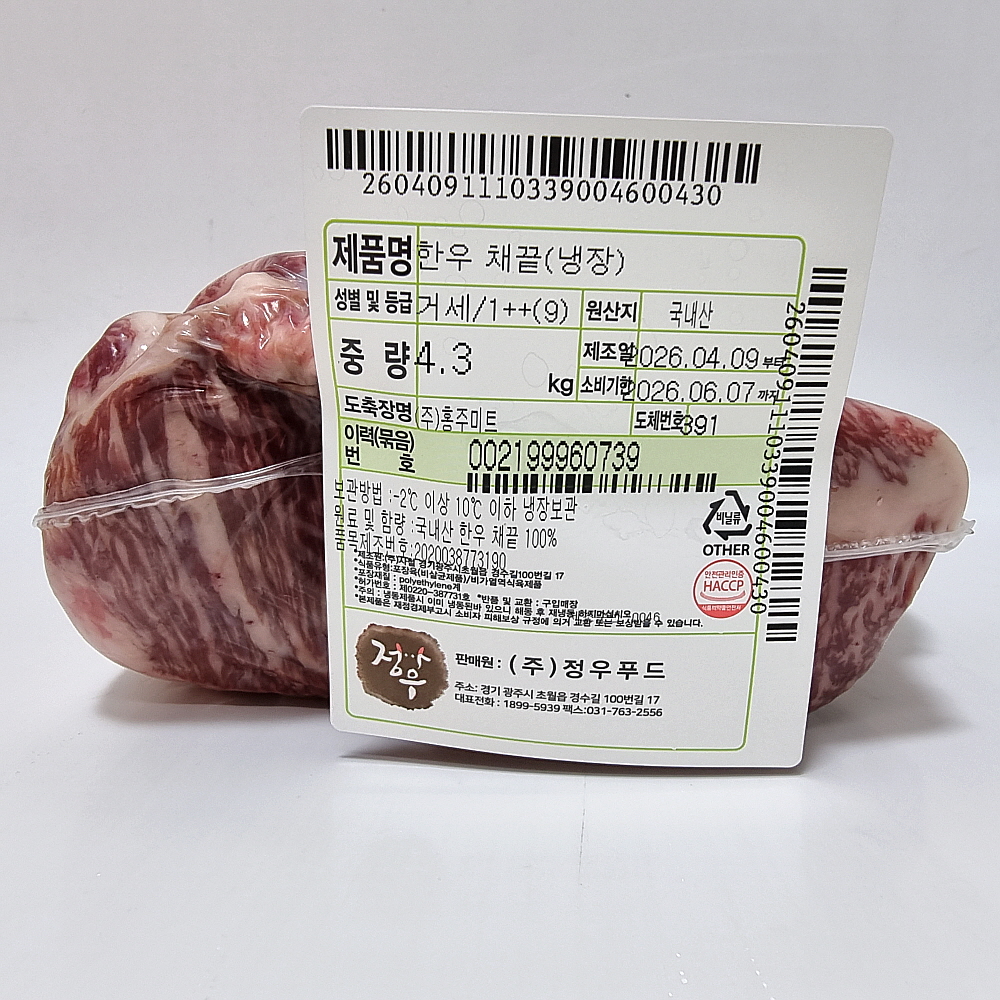 • [1++9등급]한우앞다리(냉장): 단가 : 34,900